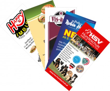 Flyer 1 – 2 Seiten, Papierstärken von 80 – 250 g/m², in verschiedenen Ausführungen, ab 25 Stück.